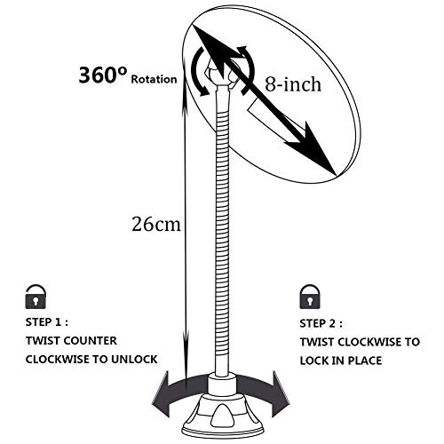 360°rotation with Easy-Lock suction cup provides a secure attachment:fully adjustable to any desired position.Perfect For Applying Make Up, Contact Lenses, Cosmetics, Shaving and More.