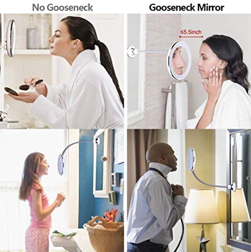 Flexible / Convenient: 10 inch Adjustable Flexible Bendable Gooseneck , you don't have to climb onto the vanity to get up close to the mirror,you can stand up in front of the vanity and adjust the height via the gooseneck to find those perfect viewing angles every time!